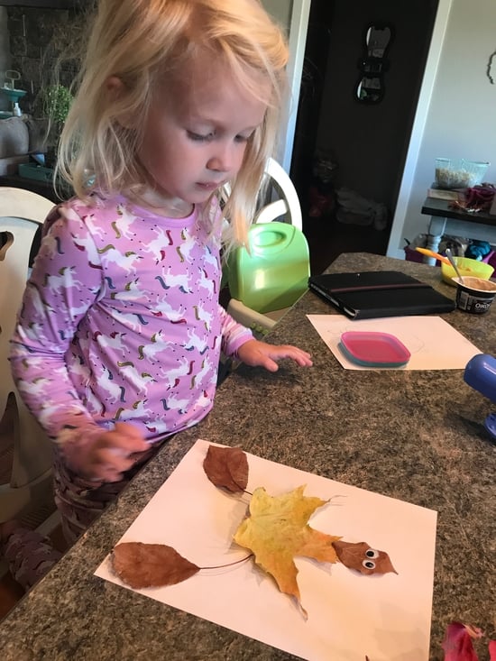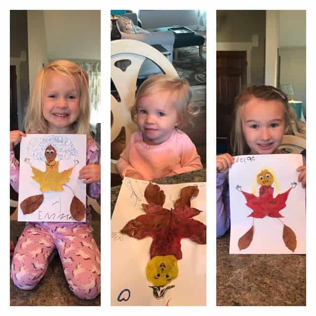 While we collected way too many leaves for this project and I was finding them around the house for weeks (my kids are impressive with their ability to spread a mess), it was a fun, easy, cheap craft, that everyone enjoyed.